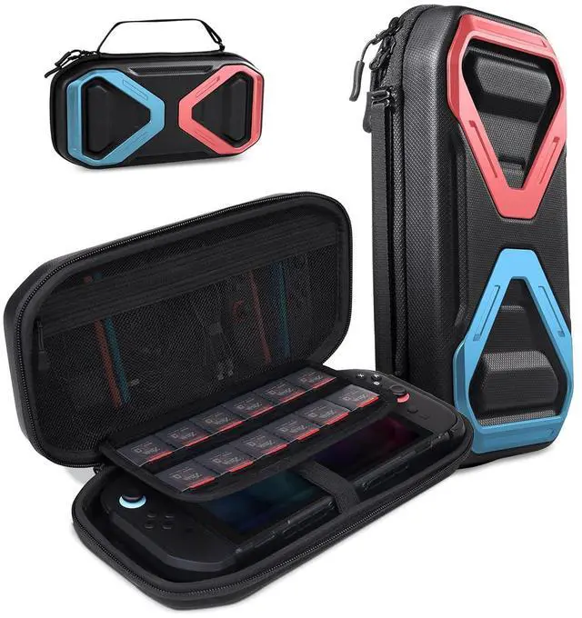 High-Capacity Storage: Custom compartments for your console, Joy Con, charging cable, and accessories. Secure slots hold up to 12 game cartridges, keeping everything organized for easy access and on-the-go gaming.