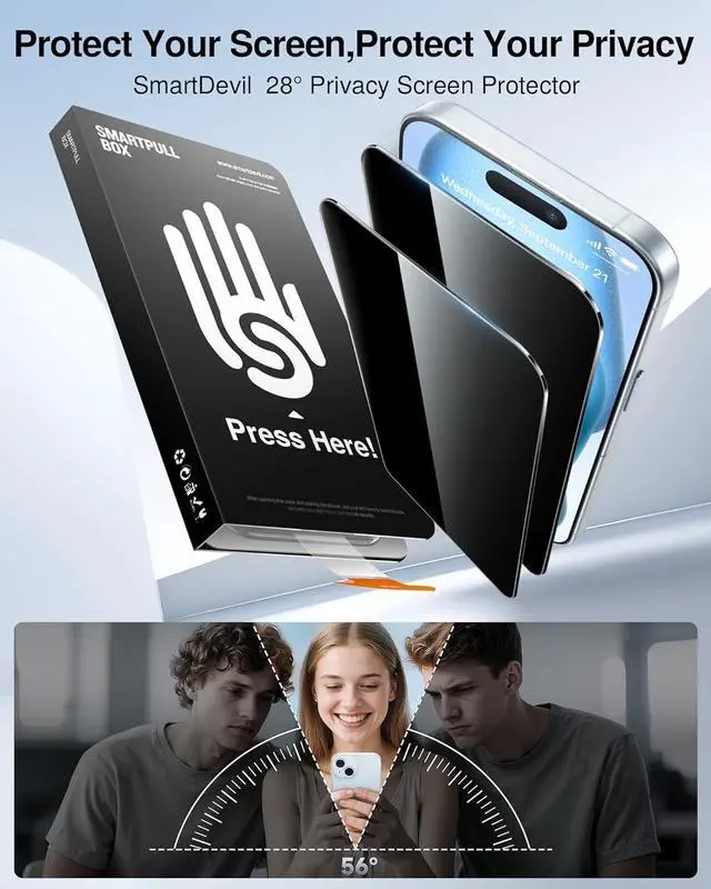 Excellent Privacy ProtectionSmartDevil's privacy screen protector adopts the latest glass anti-peeping technology to realize a 28 °privacy protection function, and the edge of the screen protector has a 2.5D large arc to bring you more comprehensive privacy protection. When you're in public places such as elevators, subways, or banks, It can block sights trying to see your secrets from both sides or monitors.