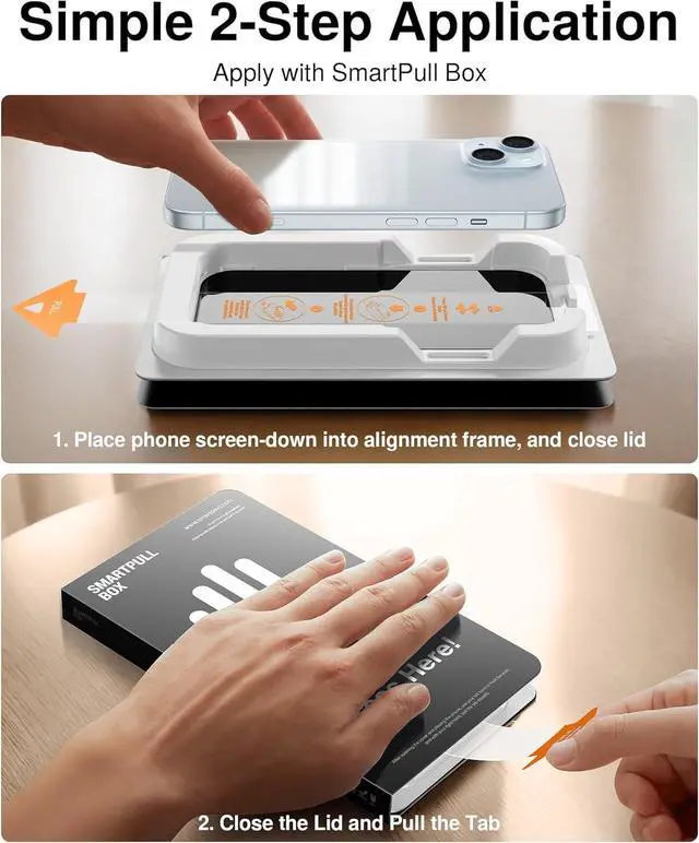 Easy Installation and Smudge-FreeNew installation design, the auto dust-elimination install tool will perfectly fits your mobile phone. The installation steps are simple and can be completed in just a few seconds. Automatically absorbs dust, no bubbles and no defects. Never before has such a silky-smooth installation experience, imagined with advanced technology and design.