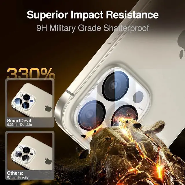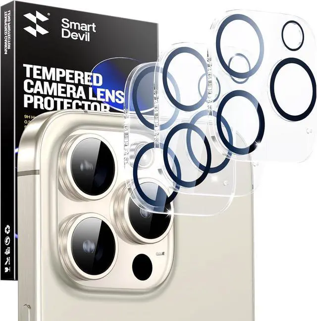 SMARTDEVIL 3-Pack Camera Lens Protector for iPhone 15 Pro Max, iPhone 15 Pro, (Not Fall Off) Clear Tempered Glass, 9H Hardness Accessories