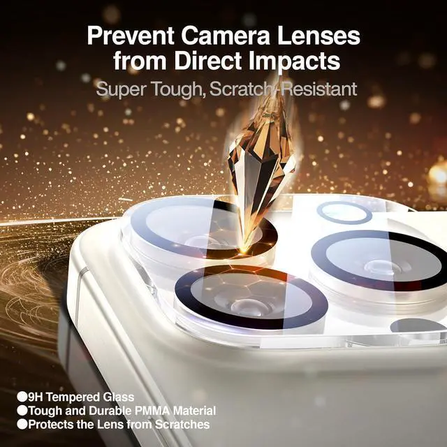 Full Coverage Protection Precise laser cutting size provides maximum protection for the entire camera lens of your phone, 9H Glass camera protector effectively protect entire camera lens from drops, scratches and other accidents.