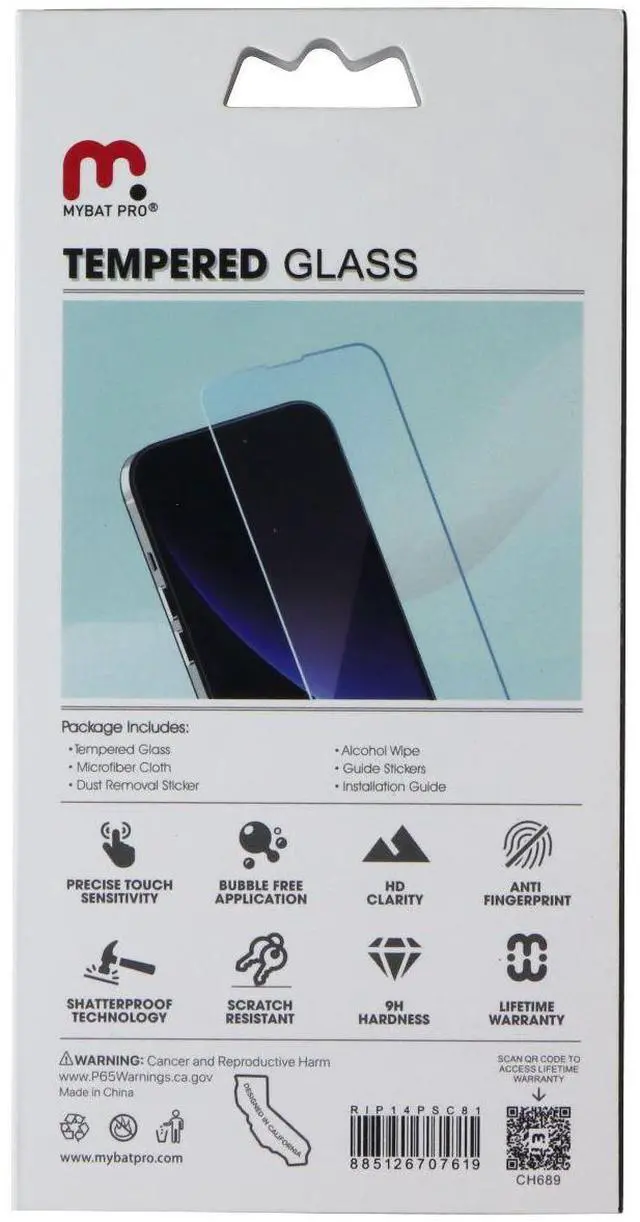 The Mybat Pro Tempered Glass Screen Protector for Apple iPhone 14 Pro Smartphones. Clear Version. Features:Precise Touch SensitivityBubble Free ApplicationHD ClarityAnti FingerprintShatterproof TechnologyScratch Resistant9H Hardness