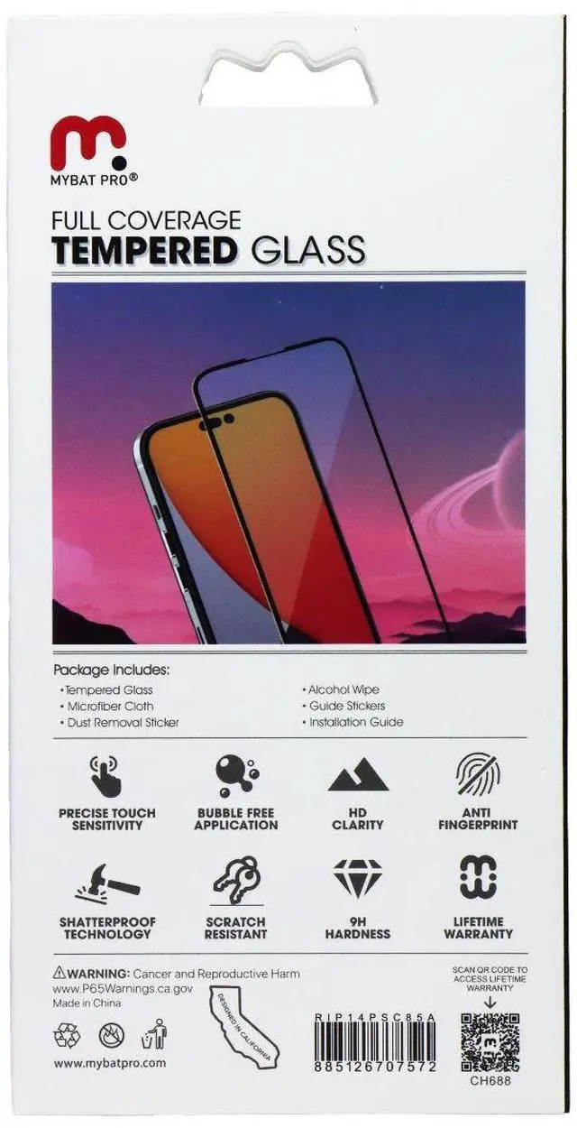 The MyBat Pro Full Coverage Tempered Glass Screen Protector for Apple iPhone 14 Pro. Clear with Black Borders.