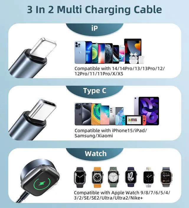 ![]() 5FT Cable with Block | ![]() 4FT Cable with Block | ![]() 5FT Multi Charging Cable | ![]() 4FT Multi Charging Cable | ![]() for Apple Watch Charger | ![]() 2 in 1 for Fitbit Charger | ![]() Magnetic Keyring Charger |