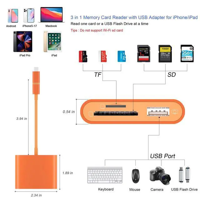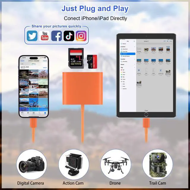 Using this card reader, you can read SD card or Micro SD card taken by digital camera, Dash Cam or Trail Camera and read the photos or videos soon.