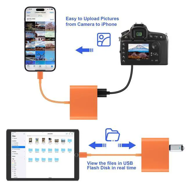 USB Adapter connets your iPhone with USB flash drive, keyboard, camera cable, etc