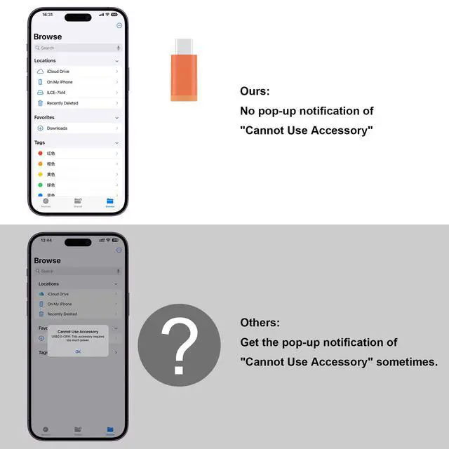 With this adapter, you can read the USB flash drive directly with your iPhone and don't have to read it through a computer. Open "Files" app and you can read and manage the files in your USB flash drive.