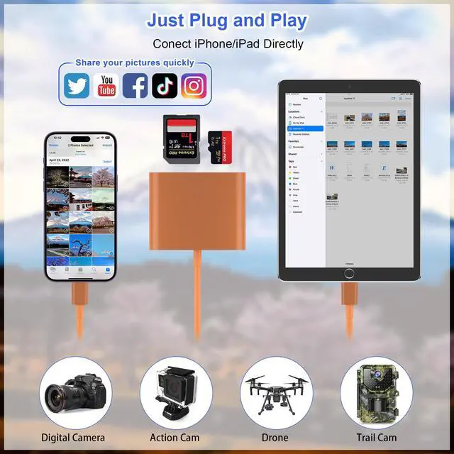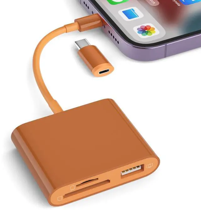 SD Card Reader for iPhone, Memory Card Reader with USB-C to Light-ning Adapter Plug and Play Trail Game Camera Micro SD Card Viewer Support SD/TF Card and USB for iPad No App Required (Terracotta)