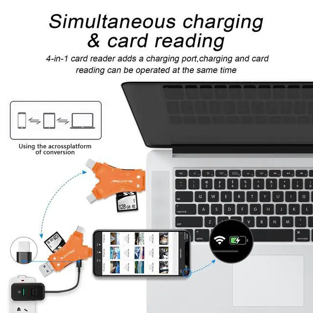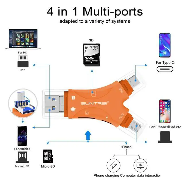 The usb 3.0 sd card reader with usb/usb c (type c)/micro usb/Charging port for iPhone/iPad