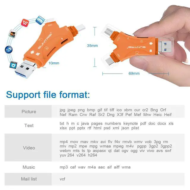 *The sd card reader maximum support is 512GB memory card. (Tips: For the Sony brand,the memory card only supports 256GB)