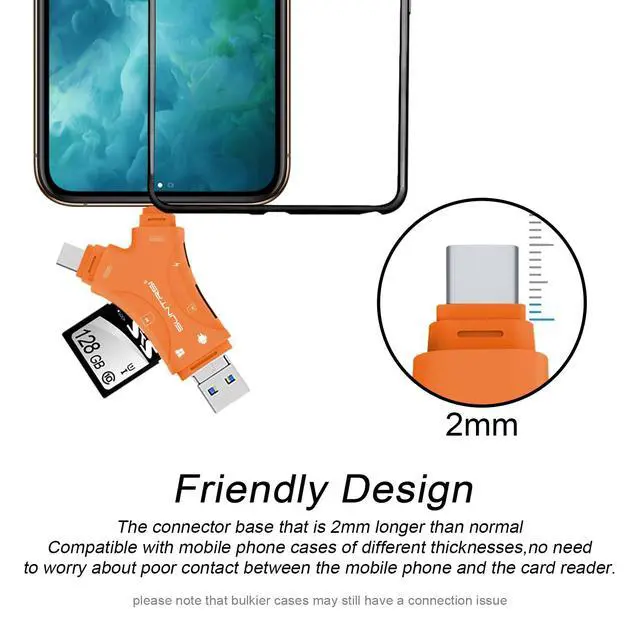 lengthening the length of the port base, so that you no longer worry about the poor contact between the phone and the memory card reader due to the problem of the phone case.