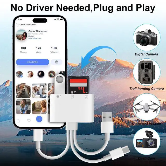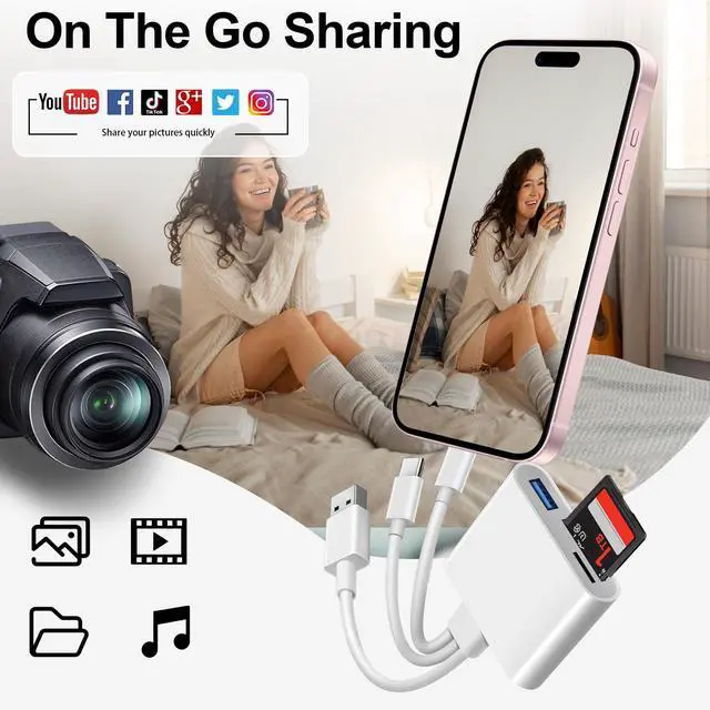 - Denlane sd card reader also supports connecting digital trail cameras via USB-A to transfer your photo from sd/cameras to iphone.