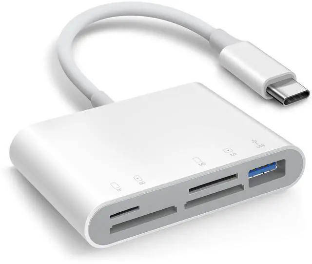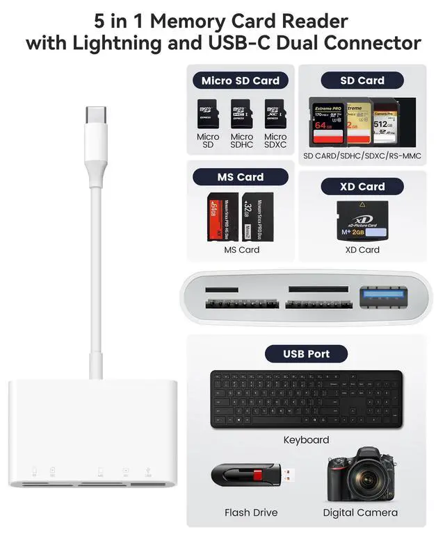 SD Card Reader for iPhone 15 Mac MacBook Card Adapter with SD MicroSD Memory Stick XD USB-A 5 Slots Trail Camera Memory Card Viewer, Portable No App Required Plug and Play