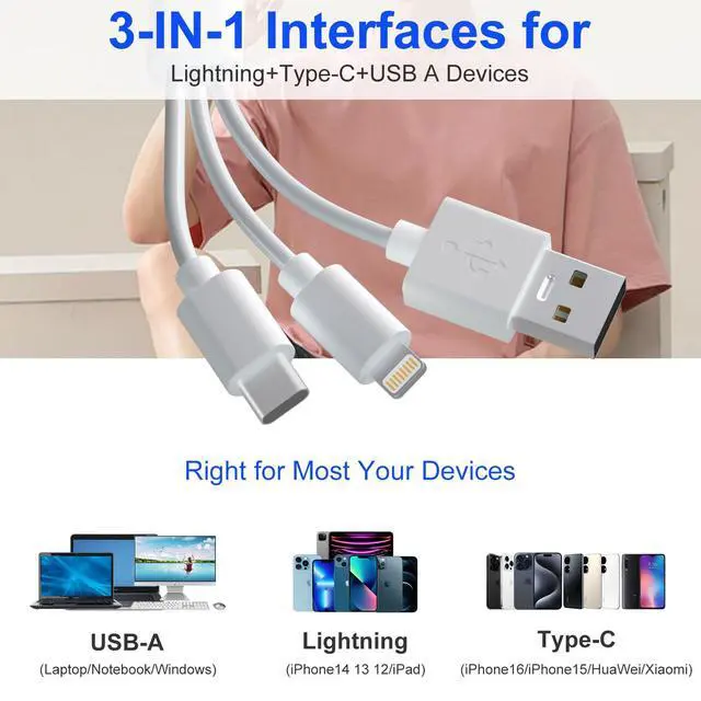 Lightning+USB C+USB A Ports 3 in 1 Port Design