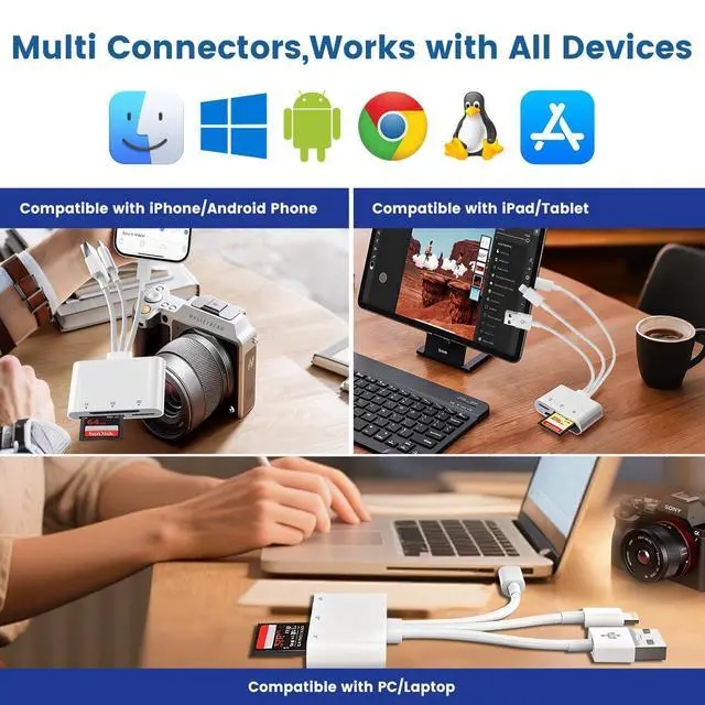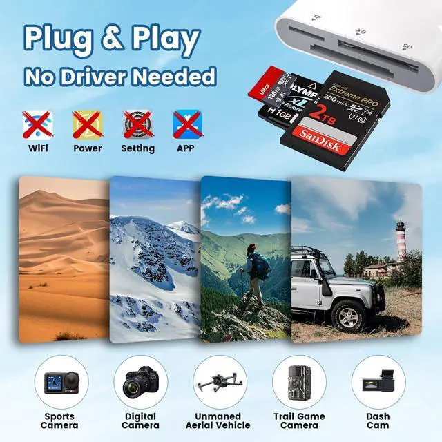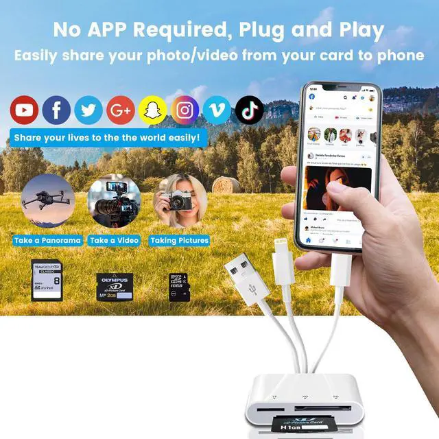 This clever little gadget supports two-way file transfers, letting you effortlessly move photos and videos from XD/SD/TF cards straight to your phone or computer. Or, go the other way and save device content directly to your memory cards.