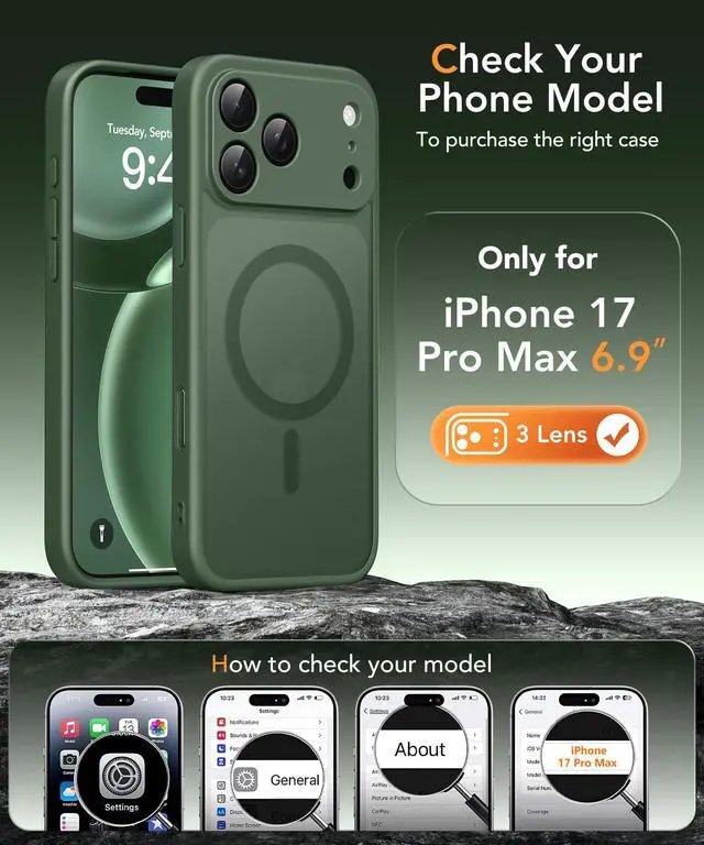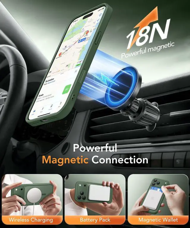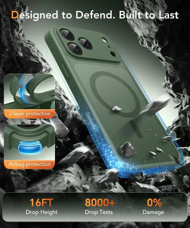 Powerful Magnetic Designed for iPhone 17 Pro Max Case: Built-in N52 magnetic ring ensures perfect compatible with MagSafe chargers and accessories, 25% Stronger than standard magnetic cases. Secure fit resists drops, twists, and shakes. Supports fast wireless charging, magnetic wallets, car mounts, power banks.