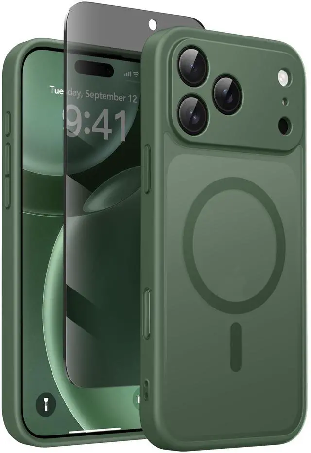 Magnetic Case for iPhone 17 Pro Max with Privacy Screen Protector [Compatible with MagSafe][Camera Protection][Military-Grade][Camera Control Cover]Translucent Matte 17 ProMax Phone Case, Green