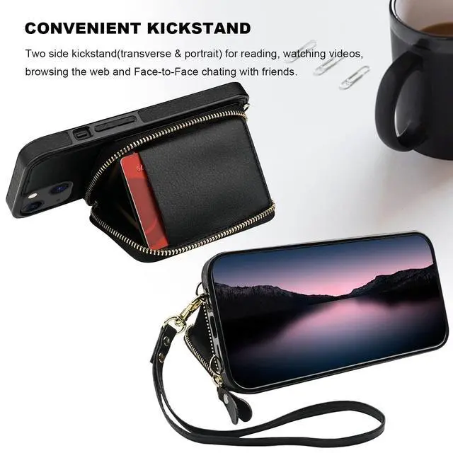 This phone purse wallet case is equipped with multi-card slots that can contain some cash as well as various cards such as credit cards, ID cards, and so on. Besides, zipper closure ensures the complete safety of your belongings.