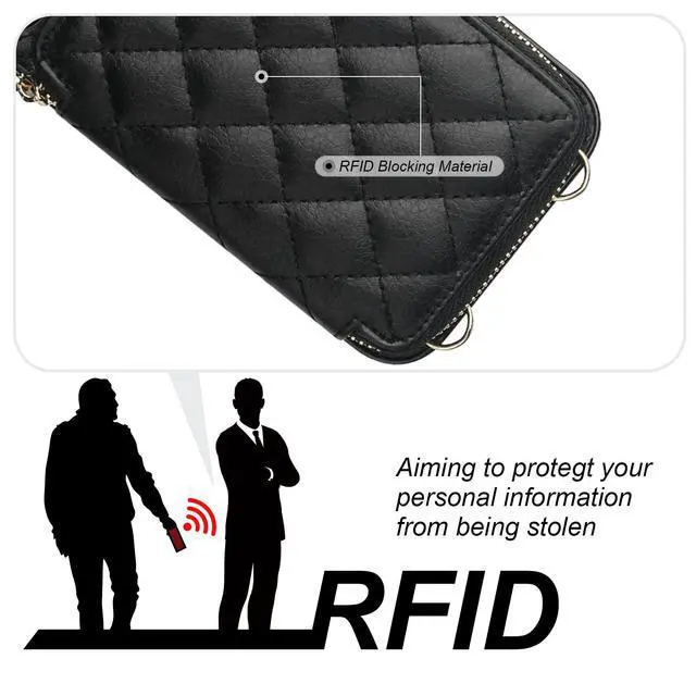 RFID blocking material applied to this wallet case protects the information in your various cards from being read and copied through radio signals.