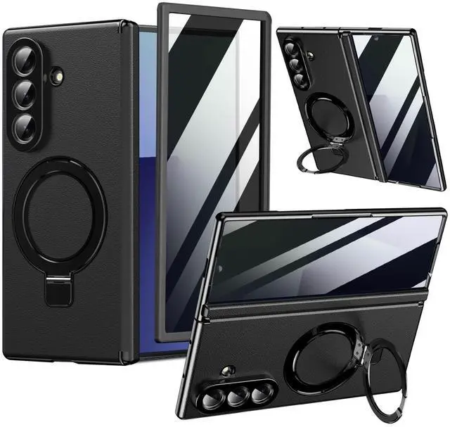 KEKBOXQ for Samsung Galaxy Z Fold 7 Magnetic Case with Privacy Screen Protector, Hinge Protection & Compatible MagSafe & Ring Kickstand,Slim Fit Protective Phone Case for Galaxy Z Fold7 Case,Black
