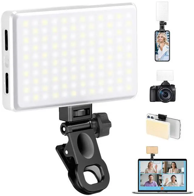 168 LED Portable Selfie Light Video Conference Light with Front & Back Clip, Rechargeable 3 Light Modes for Phone, iPhone, Android, iPad, Camera, Laptop, Makeup, Tiktok, Vlog(White)
