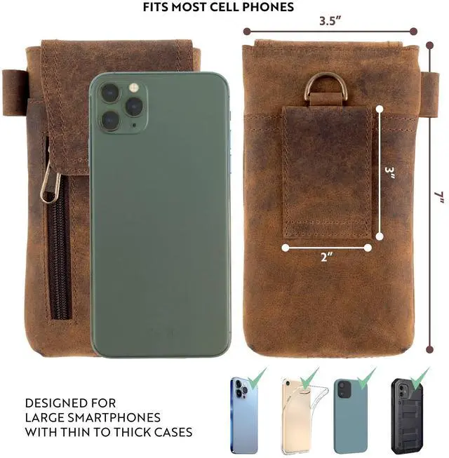 That way, your phone stays safe and secure in its protective case, both inside and outside your leather holster. No need to leave your case at home!