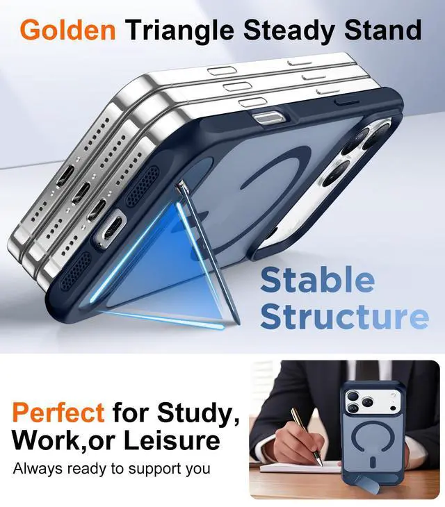 Designed for iPhone 17 Pro Case, [Built-in Invisible Kickstand][Compatible with MagSafe][Military Grade Shockproof] Slim Translucent Matte Phone Case 6.3 inch (Blue)
