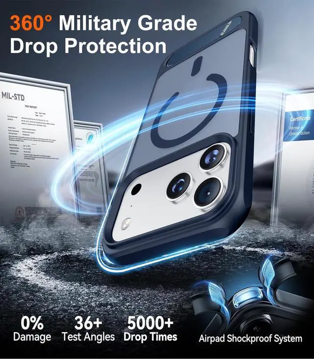 Trusted Dropproof New Shockproof Designed for iPhone 17 Pro Case has been tested 2,500+ times and has been dropped from all angles without damage! Besides, this case provide comprehensive protection for your phone, 1.5MM raised screen edge and 2.0MM raised camera edge keeps your phone safer, protect your expensive device from unexpected scratches, drops, bumps, stains, or any damage