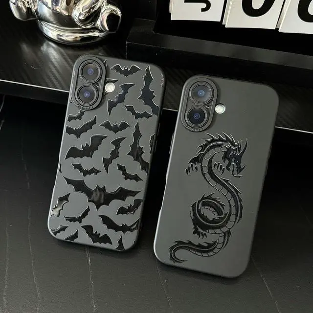 Case for iPhone 16 [Compatible with MagSafe] Built in Magnetic Cute Sleek Print Cartoon Cool Style Design for Man Boys Bat Soft TPU Protective Shockproof Mate Black