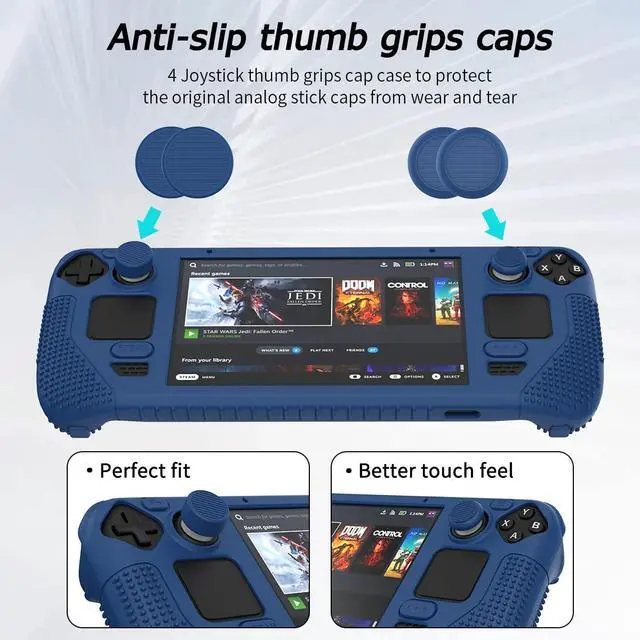 Compatible with Steam Deck/Steam Deck OLEDSteam Deck upgraded standing protective case and thumb grips are moulded according to the real machine. The cover compatible with Valve Steam Deck/Steam Deck OLED. But the OLED version will block the screen a little bit. Precise cutouts fit all buttons and ports on Steam deck. The rear opening is a new design with more beautiful image, which is conducive to better heat dissipation. Steam deck is not included.