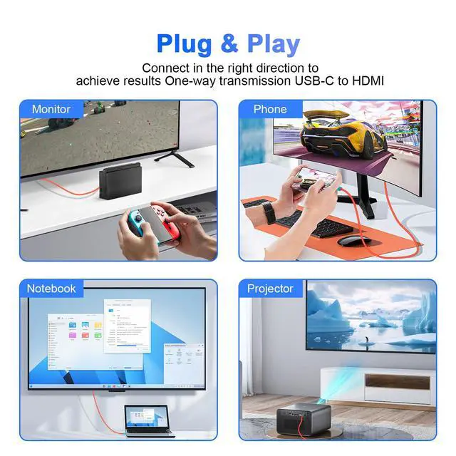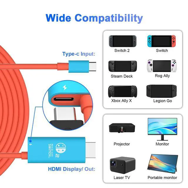 Type-c to HDMI Dock:Transform your gaming experience with this 6.6 FT USB-C to HDMI cable, delivering seamless, high-definition gameplay directly from your console to your TV in one simple plug-and-play connection.