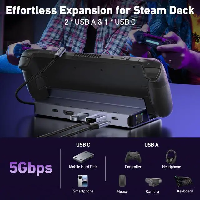 Tips 1: Please try to avoid using it with a protective case, if the protective case is too thick, it may not fit. Tips 2: It's normal that Steam Deck will heat up when playing while charging, please don't worry.