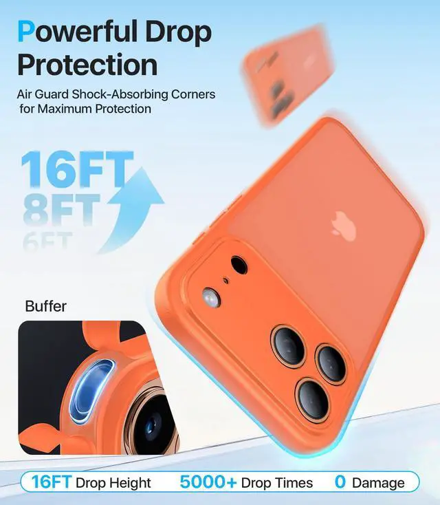 Shockproof Protection: Reinforced corners and upgraded impact-resistant materials make this for iPhone 17 Pro case tough enough to handle anything. With a 360° airflow design, its drop-tested 5,000 times from heights up to 16 feet. Slim, lightweight, and built for everyday useperfect for sports, travel, or life on the go