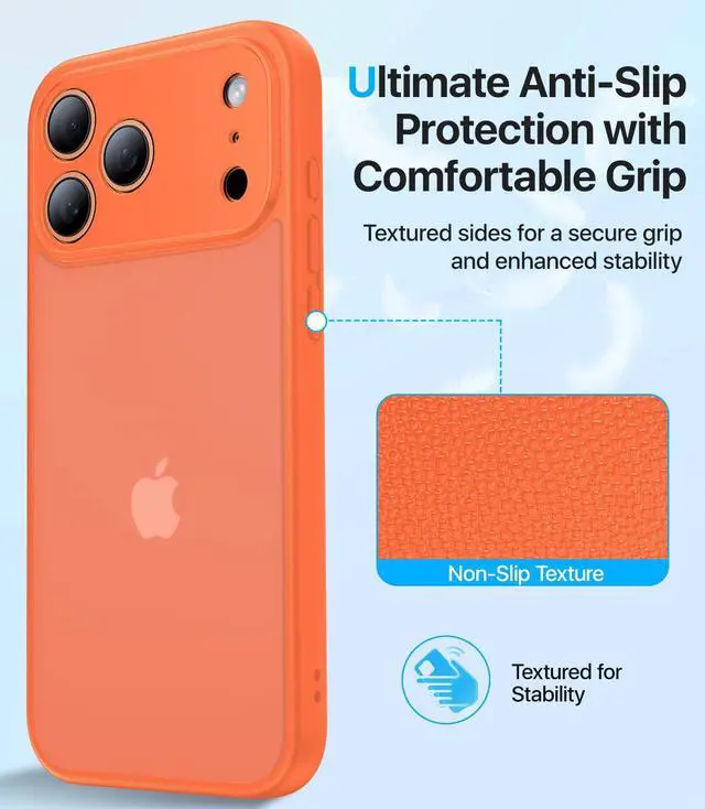 Ribbed Non-Slip Sides: With ribbed textured sides and ergonomic grooves, this for iPhone 17 Pro case offers a firm, comfortable hold to prevent slips and dropseasy to carry, easy to pocket