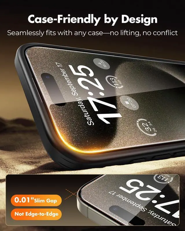 Dust-Free Precision InstallationDesigned for a premium install experience, this upgraded 3-step dust-free system allows your screen protector iphone 15 Pro Max to align and adhere flawlessly in seconds. Electrostatic dust removal and vacuum-seal bonding ensure a clean, bubble-free resultno residue, no rework, just precise, professional-level installation.