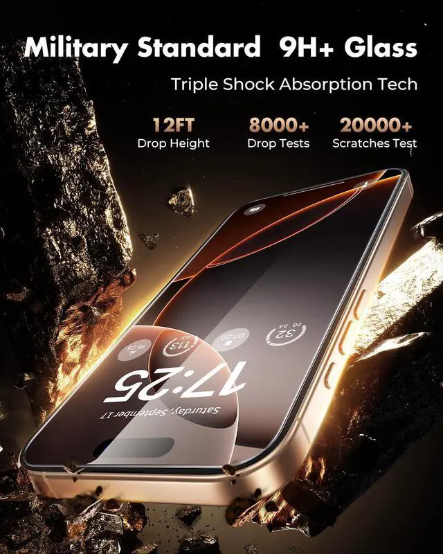 Military-grade durability, tough as nails: Made with 9H+ glass, this iPhone 16 Pro Max protector passed 220lb pressure and 12ft drop tests. Reinforced edges guard against cracks and chips from daily impact and scratches.