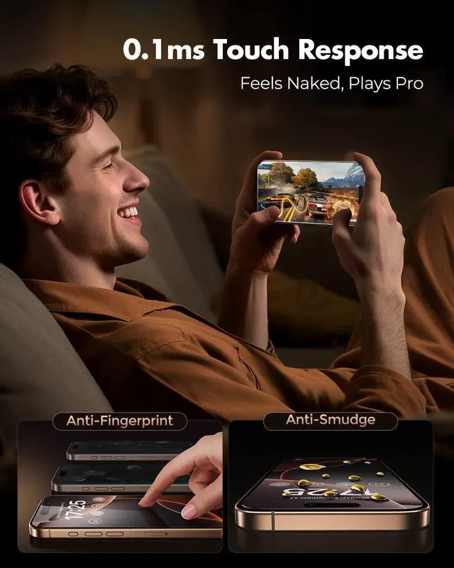 Anti-fingerprint & smudge-resistant: A nano-grade oleophobic coating repels fingerprints, sweat, and smudges. Your iPhone screen stays crystal clear and easy to wipe cleaneven after long hours of use or gaming.