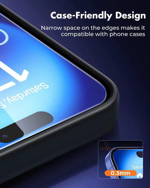 Perfect Fit & Case Friendly: Precisely cut to perfectly match your phones display, with edges designed slightly smaller than the screen. This prevents interference with Face ID and the front camera, while ensuring case compatibility and avoiding edge lift or bubbling.