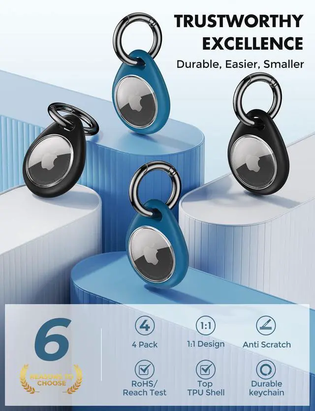 ![Alt view image 2 of 7 - AirTag Holder for Apple - 4 Pack Air Tag Case [Fit Tightly Design] [Easy to Install] [Hold Securely] Waterproof TPU Protective Cover with Metal Keychain for Kids,Pet,Luggage,Backpack,Keys](https://c1.neweggimages.com/productimage/nb640/C5S1D2603210VHO8633.jpg)