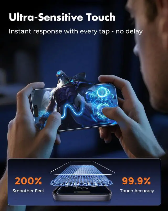 [Anti-Fingerprint Coating for Long-Term Clarity] Engineered with an electro-crystallized oleophobic coating, this screen protector repels fingerprints, smudges, and oil, ensuring your screen stays clean and crystal-clear even after extended use.