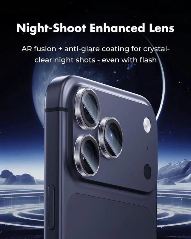 [Camera Lens Protection with Night-Shoot Enhancement] The included lens protectors feature advanced AR seamless fusion technology, anti-glare coating, and an upgraded NightShoot ring. Enjoy flawless photography and video - day or night, with flash or without.