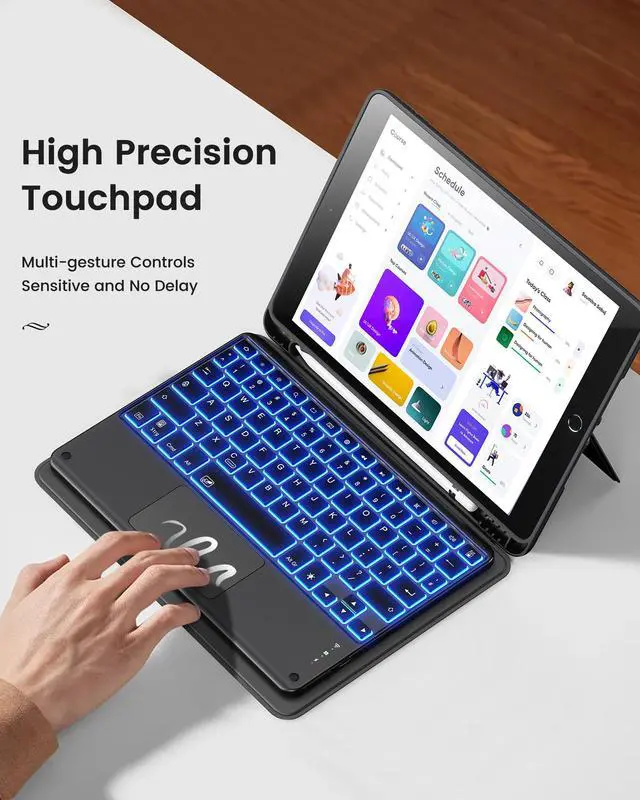 Keyboard Case for iPad 9th/8th/7th Generation ( 10.2 Inch), 7-Color Backlight & High Precision Trackpad, Slim and Portable Detachable Folder Style Keyboard Case with Pencil Holder, Black