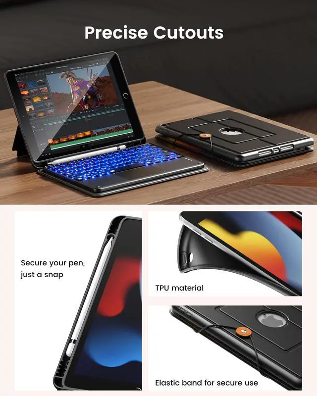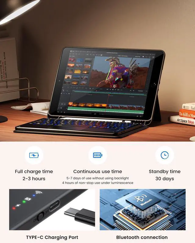 Unique folder-style design: The lightweight and slim 9th generation iPad case with keyboard features a unique folder-style design, making it easy to carry and work, entertain, or study anywhere, anytime