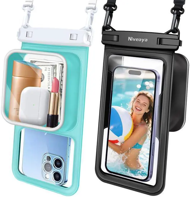 2 Pack IPX8 Waterproof Phone Pouch, Large Space Cell Phone Pouch Floating, Water Proof Phone Case with Lanyard, Phone Dry Bag Beach Cruise Ship Essentials(Up to 8.5" )
