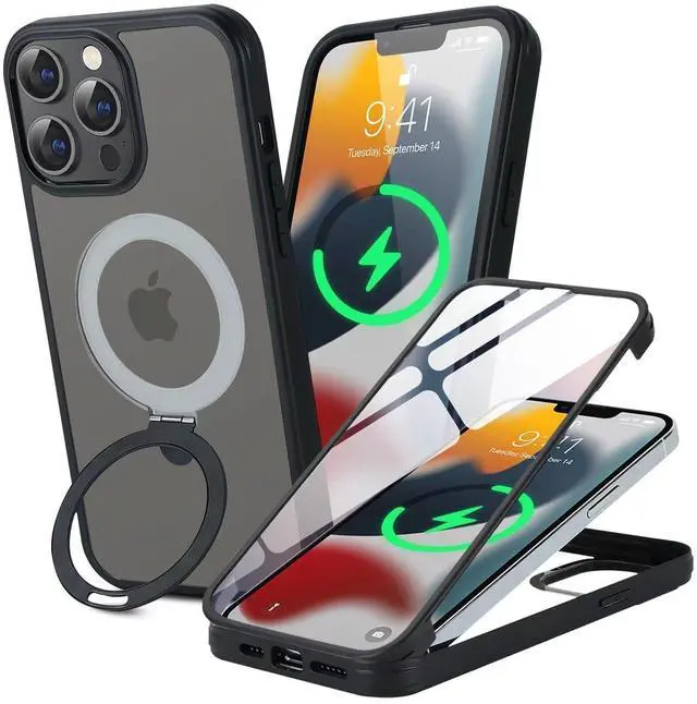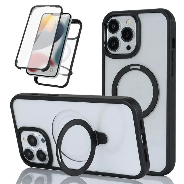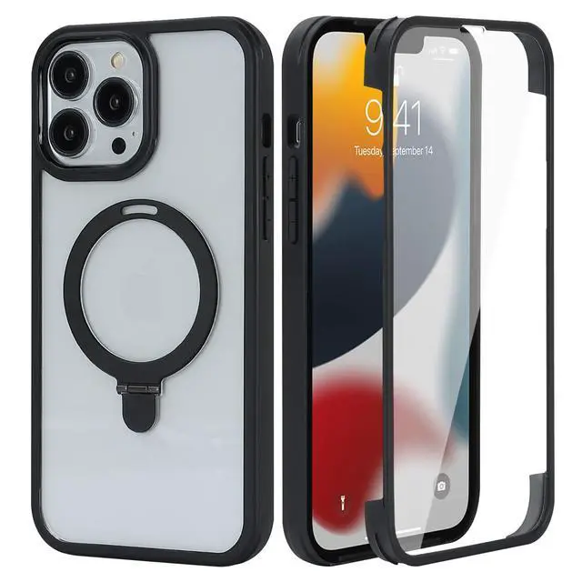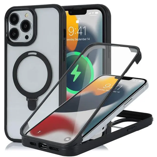 Cavor for iPhone 13 & iPhone 14 Case, Compatible with Magsafe, for iPhone 14 Case with Screen Protector, Stand Protective Magnetic Phone Cover-Black
