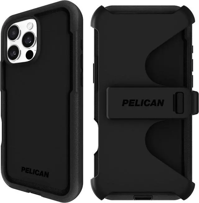 Contents: 1 Unit of Pelican iPhone 16 Pro Max Case - Voyager Series Black + (1) Belt Clip Holster (fits New iPhone 16 Pro Max 6.9 Inch 2024 only); Lifetime Warranty