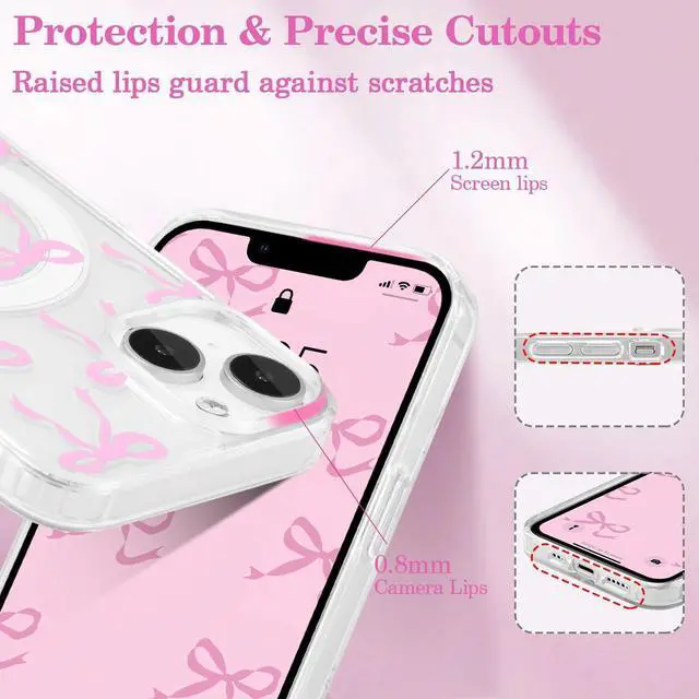 Material: This cute case is made of high quality TPU which is tough to withstand daily bumps and scratches; our bows phone case looks slim and light comfortable to hold; Pretty transparent case is the best gift for women and girlPretty