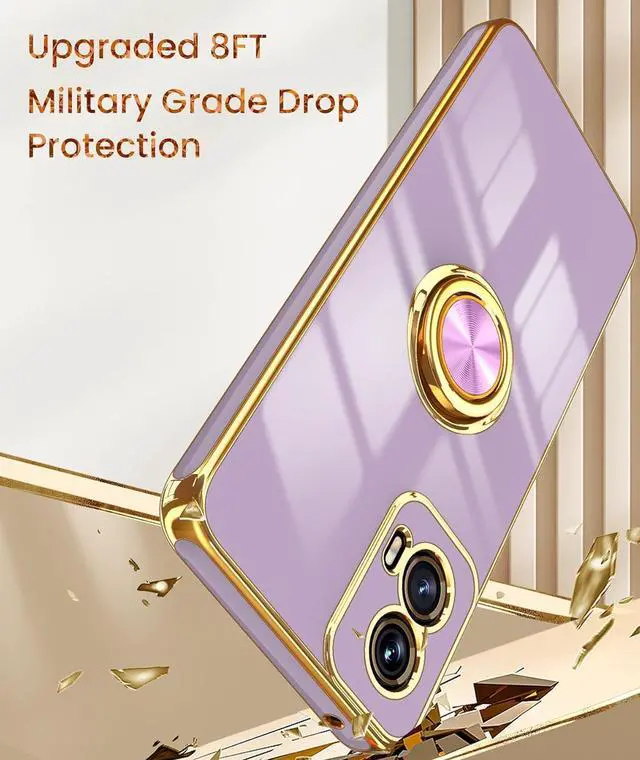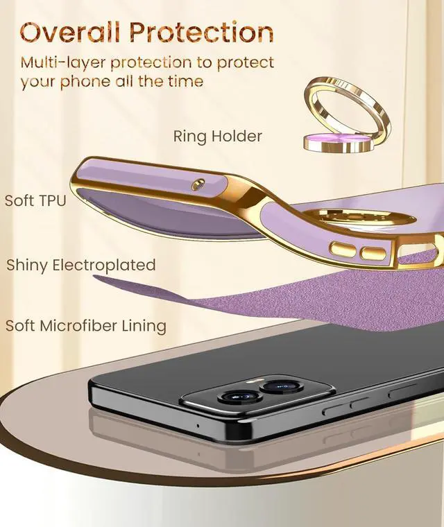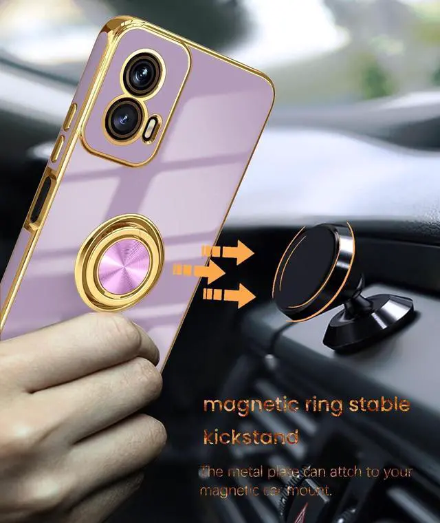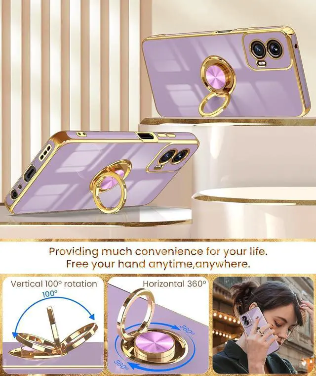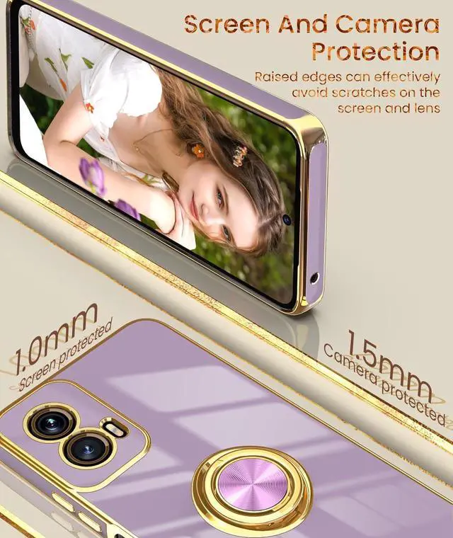• Dretal for Moto G Power 5G 2024 Case 2X Screen Protector 360° Rotatable Ring Holder Magnetic Kickstand Plated Gold Edge Slim Soft TPU Protective Cover for Motorola G Power 5G 2024 (Purple)