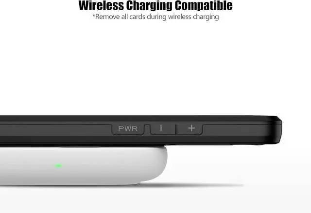 Card Slot Design: Slim down your wallet store up to 2 cards carry your ID and credit card instead of dragging your huge wallet everywhere with all essentials in one hand you will love how convenient it is. You will hearclick when slide the door to the fully closed position the slider staying firmly in place no worries lost your card. Sleek exterior is easy to slide in and out of pockets. Wireless Charging without having to remove the case.