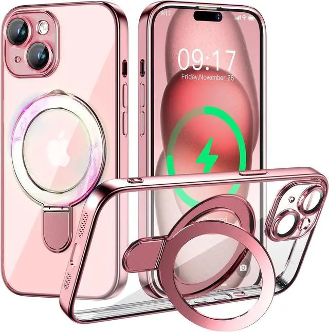 Perfect Compatibility & Never Yellowing It's only designed specifically for iPhone 15 6.1 inch with precise cutouts for easy access to all buttons speakers cameras and charger slot. The buttom upgrade protection of built-in dustproof net. The back is crystal clear and transparent using imported German Bayer and polycarbonate yellow resistant pigments which can truly achieve strong anti-yellowing and allow the genuine color to shine through. Slim light and delicate to bring back texture. Brand-New Invisible Magnetic Stand iPhone 15 case combined the strong magnetic technology with a foldable stand which can prevent MagSafe accessories from falling without interfering with signal.